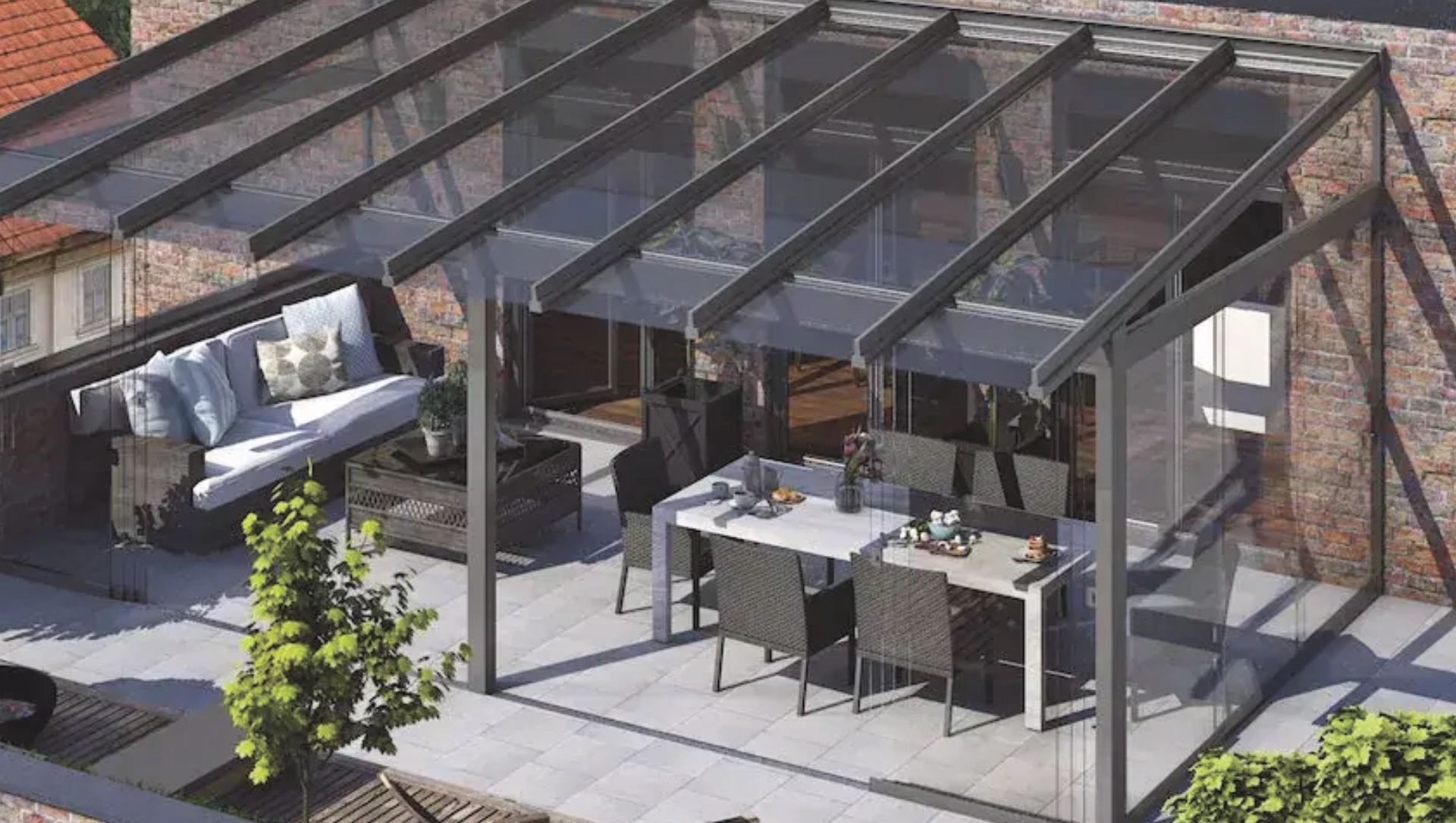 - Modulares Zubehör wie LED-Beleuchtung, Glasschiebewände, Festverglasungen oder Heizstrahler zur Aufwertung des Außenraums.